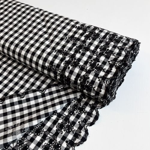 Baumwollstoff Checks black white 1-side border