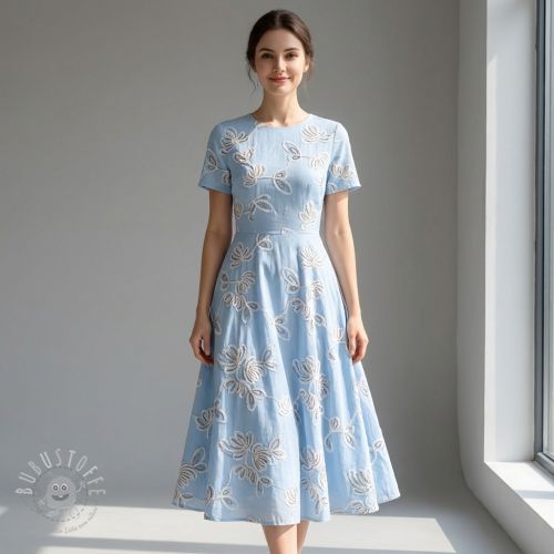 Baumwollstoff EMBROIDERY Loom En Light baby blue