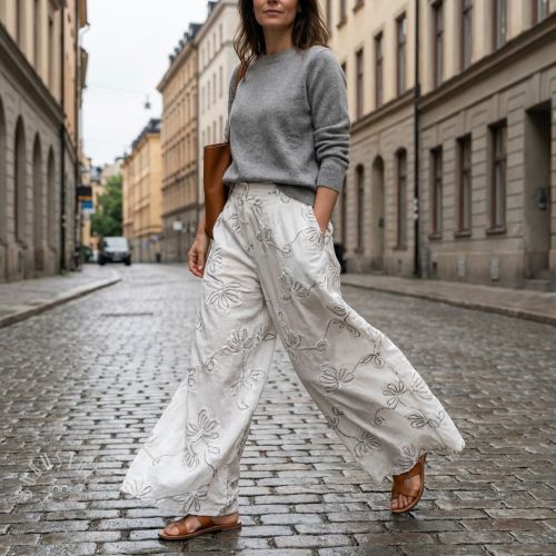 Baumwollstoff EMBROIDERY Loom En Light brown