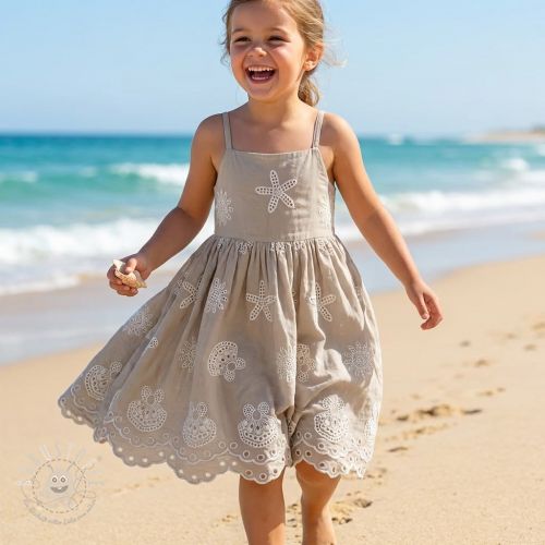 Baumwollstoff EMBROIDERY Sea ornaments brown