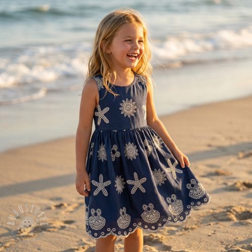 Baumwollstoff EMBROIDERY Sea ornaments navy