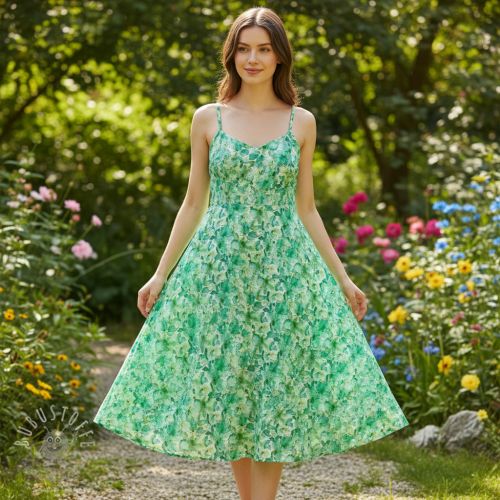Baumwollstoff EMBROIDERY Viola green digital print
