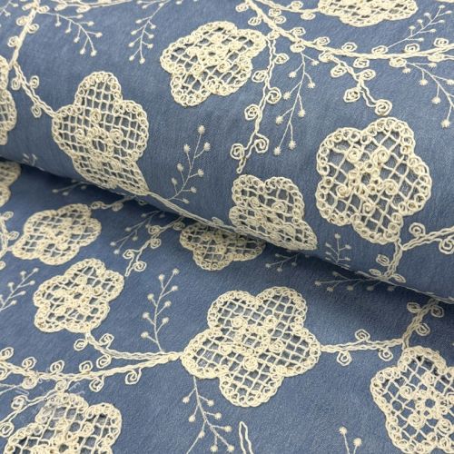 Baumwollstoff JEANS EMBROIDERY Flora design D