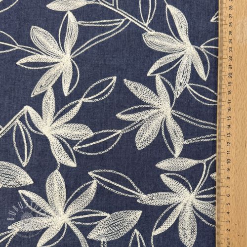 Baumwollstoff VOILE EMBROIDERY Flowers navy