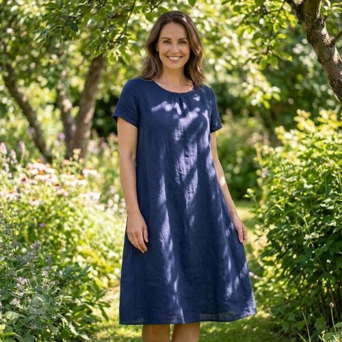 Baumwollstoff mit Leinen PREMIUM steel blue