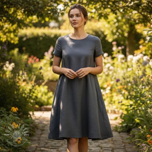 Baumwollstoff mit Leinen PREMIUM dark grey
