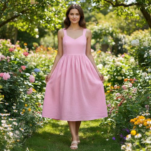 Baumwollstoff mit Leinen PREMIUM dawn pink