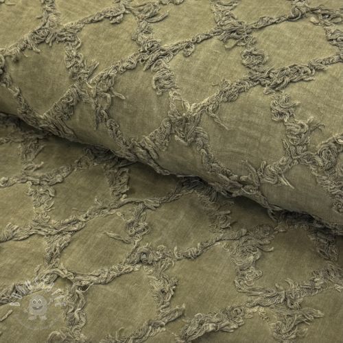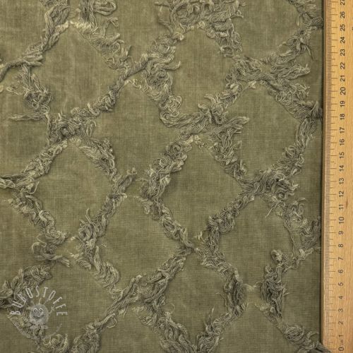 Baumwollstoff mit Leinen Vintage Fringe Diamonds army