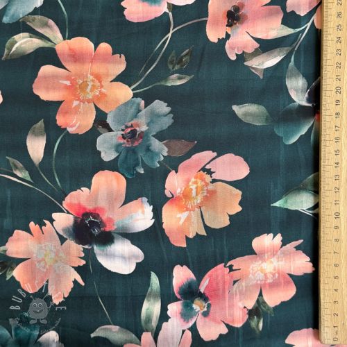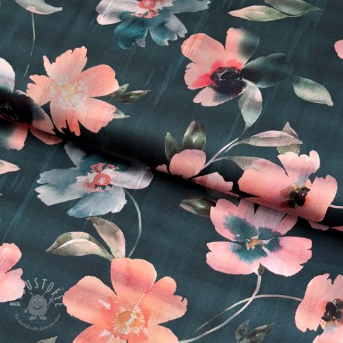 Baumwollstoff SATIN Penny flower petrol digital print