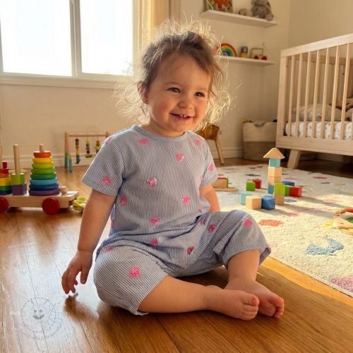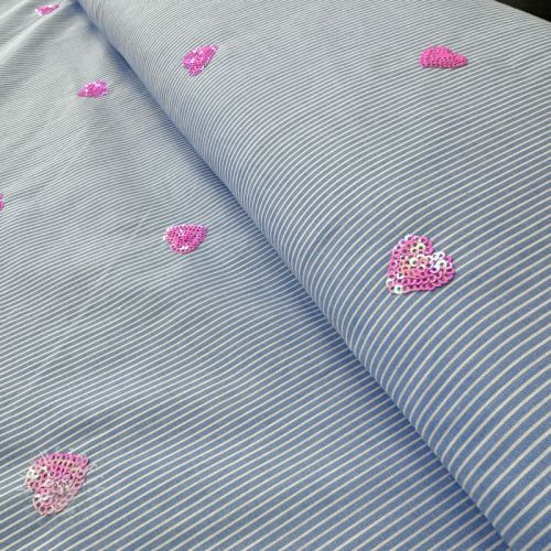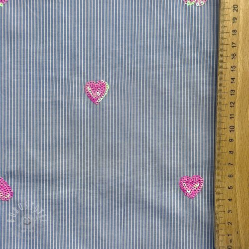 Baumwollstoff Stripes Sequins Hearts blue