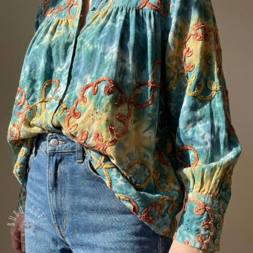 Baumwollstoff TIE DYE EMBROIDERY Elise tape design A