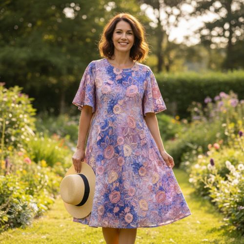 Baumwollstoff TIE DYE EMBROIDERY Flora design D