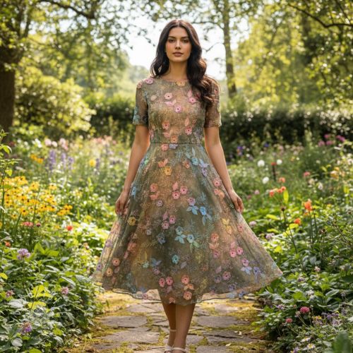 Baumwollstoff TIE DYE EMBROIDERY Poppy design I