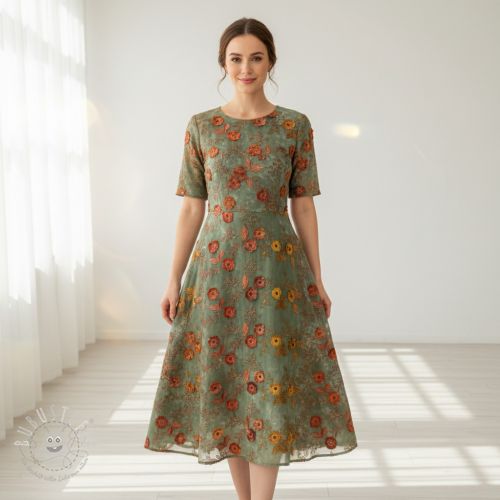 Baumwollstoff TIE DYE EMBROIDERY Poppy design V