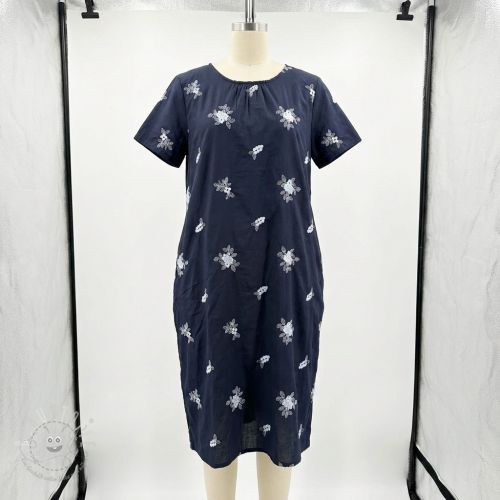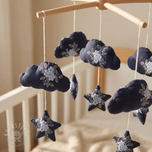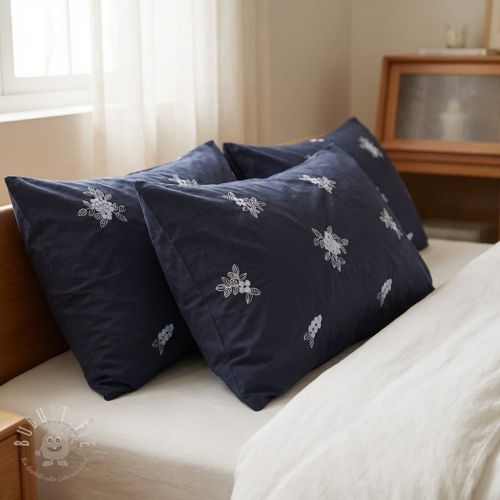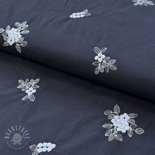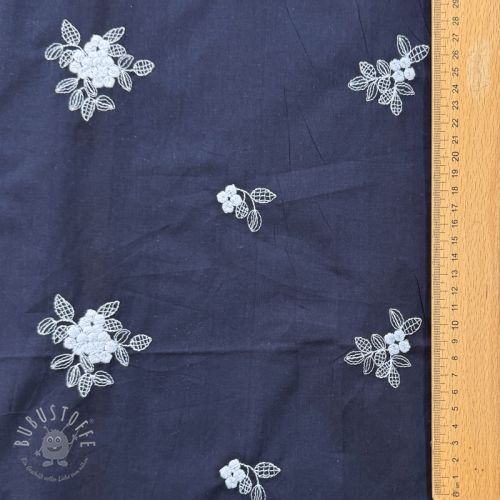 Baumwollstoff VOILE EMBROIDERY Flowers navy