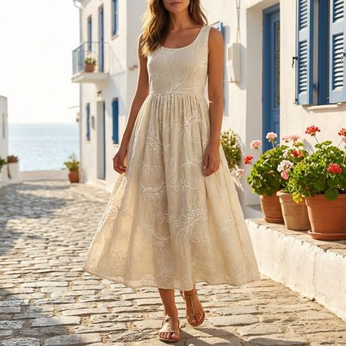 Baumwollstoff VOILE EMBROIDERY Kokka natural
