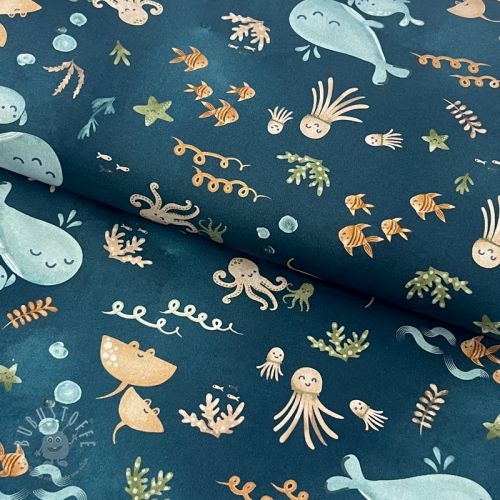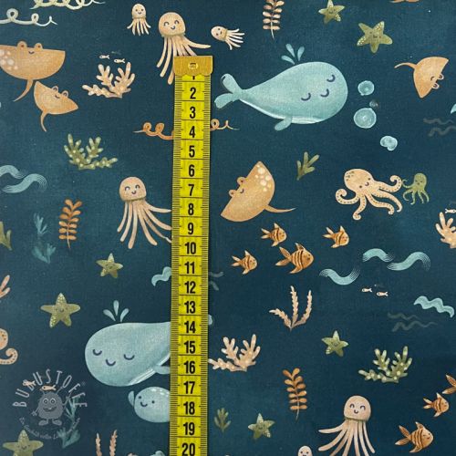 Baumwollstoff Whales petrol digital print