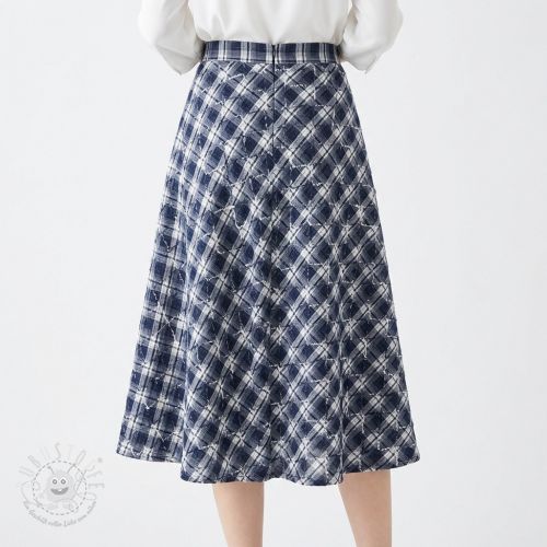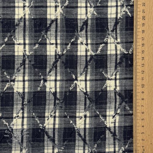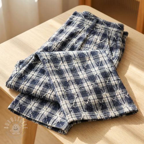 Baumwollstoff YARN DYED BRUSHED Check EMBROIDERY navy