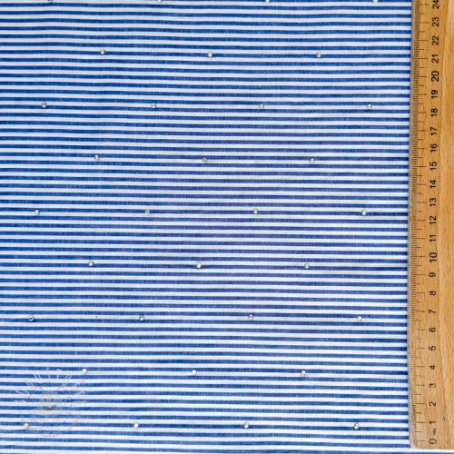 Baumwollstoff YARN DYED Stripes with studs blue