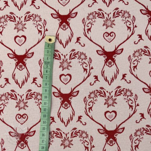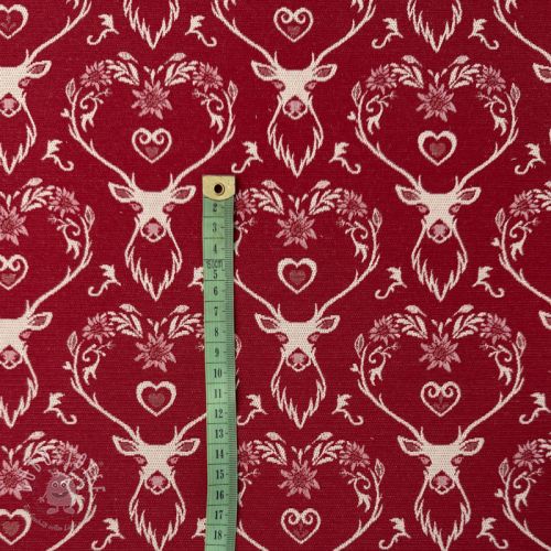 Dekostoff jacquard DOUBLE FACE Landhaus Deer Heart dark red