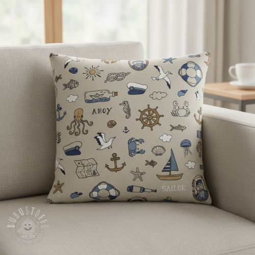 Dekostoff Linenlook premium Nautical Doodle
