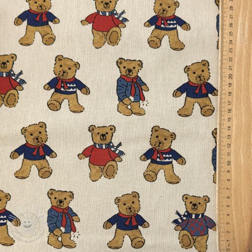 Dekostoff Linenlook Teddy Bear Cosy digital print