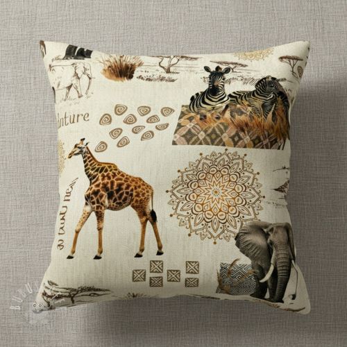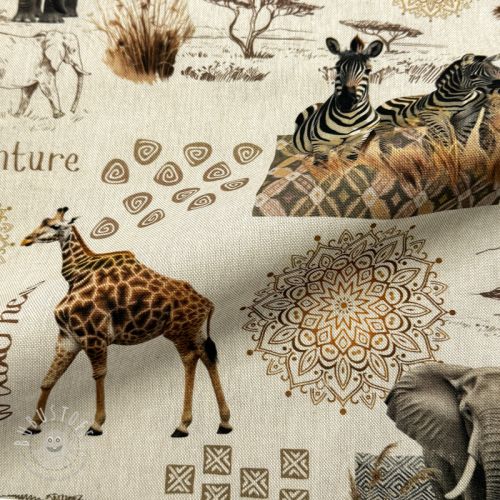Dekostoff premium Linenlook Wildlife Safari Trip digital print