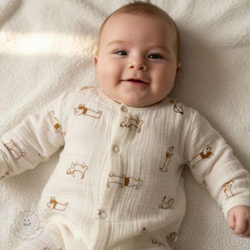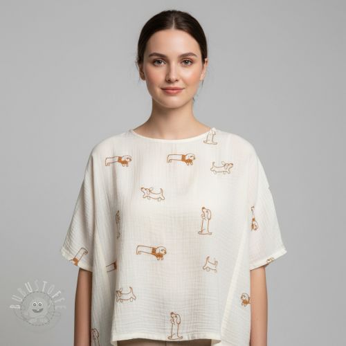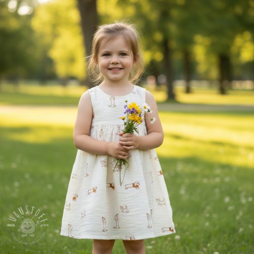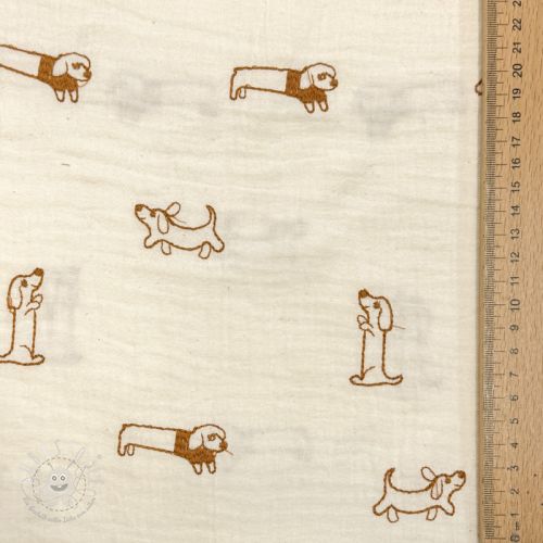 Double gauze/musselin EMBROIDERY Dogs ecru
