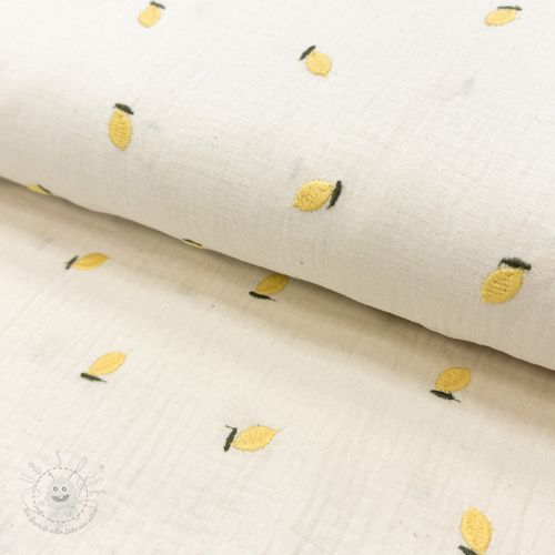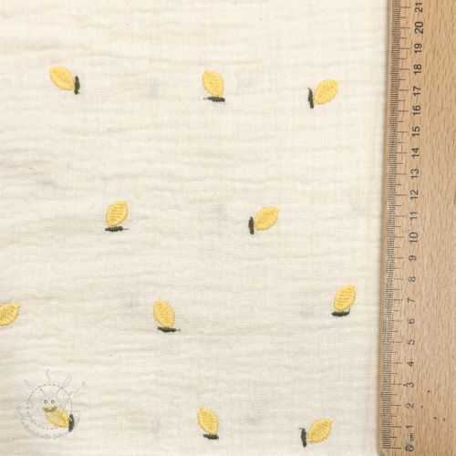 Double gauze/musselin EMBROIDERY Fruit natural yellow
