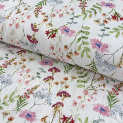Double gauze/musselin Flower Sabrina white digital print