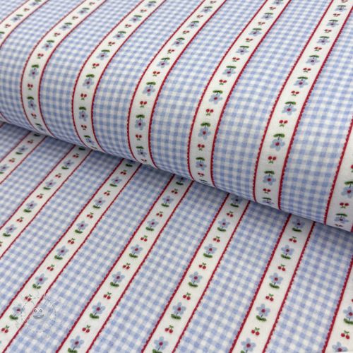 Double gauze/musselin Flowers check blue digital print