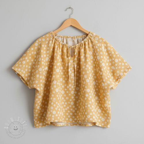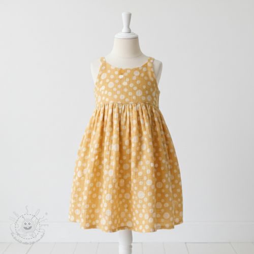 Double gauze/musselin JACQUARD Dots dark yellow