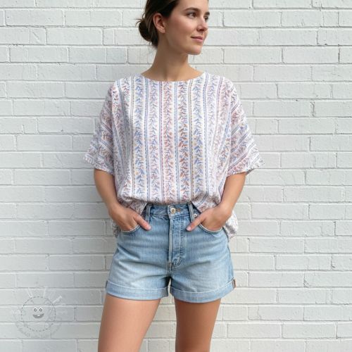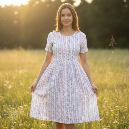 Double gauze/musselin Leaves in stripes digital print ORGANIC