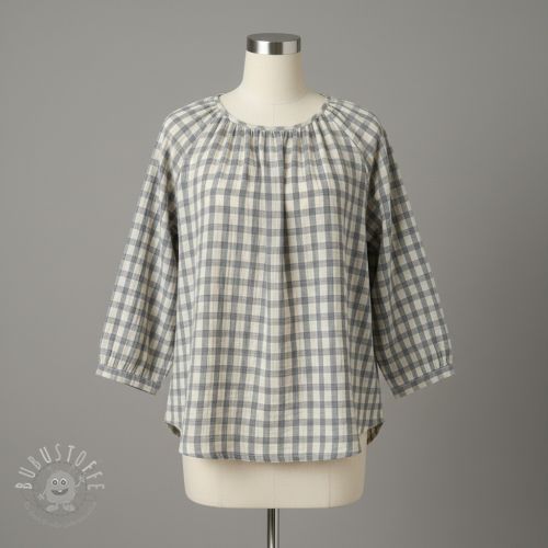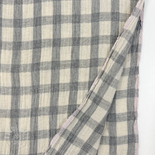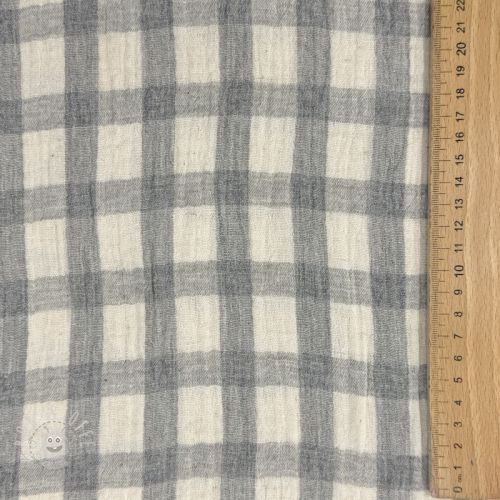 Double gauze/musselin LINEN YARN DYED Checks grey natural