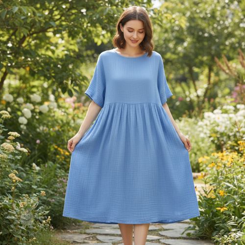 Double gauze/musselin cobalt ORGANIC