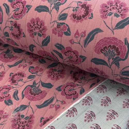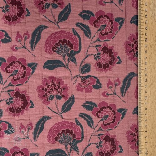 Double gauze/musselin STEPPED Flowers mauve