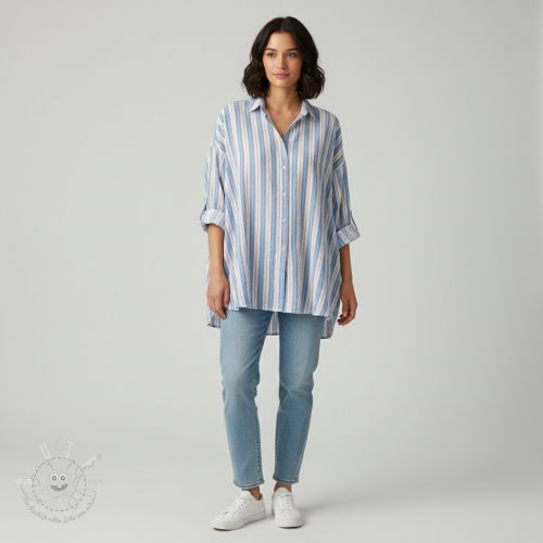 Double gauze/musselin YARN DYED Line blue