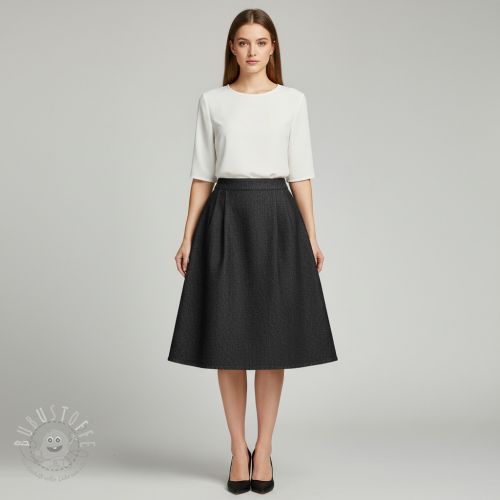 Baumwollstoff JEANS Embroidery leaves black