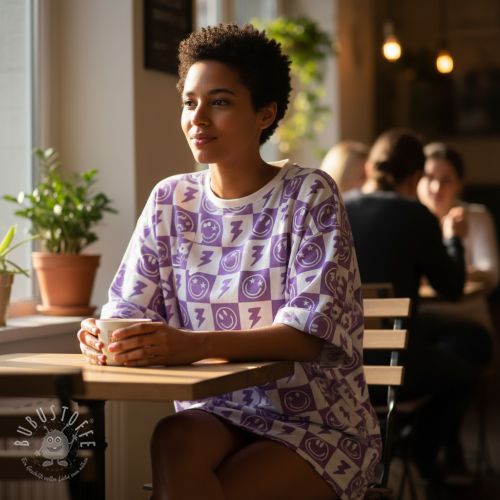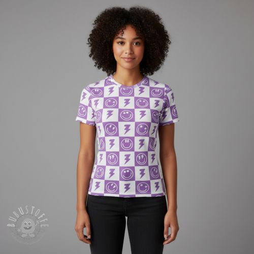 Jersey Happy faces lavender digital print
