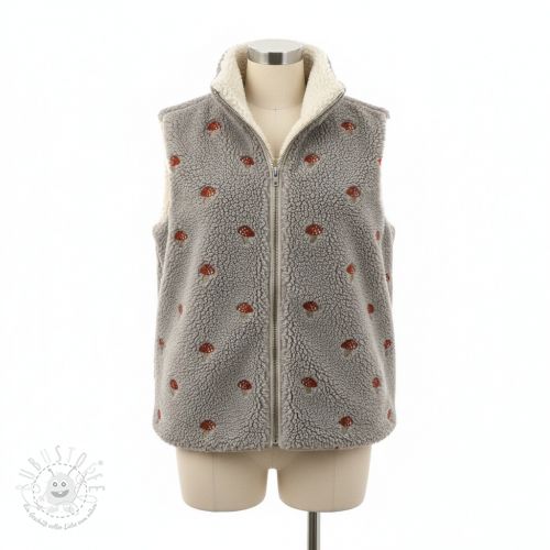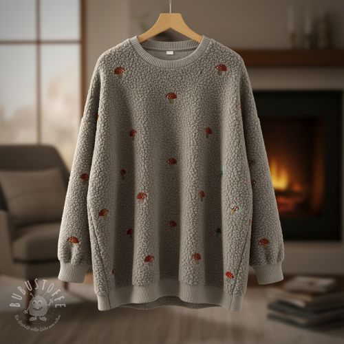 Mantelstoff EMBROIDERY Little mushrooms pebble