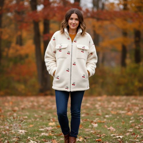 Mantelstoff TEDDY EMBROIDERY Cherries