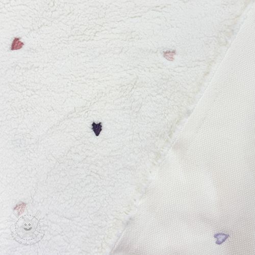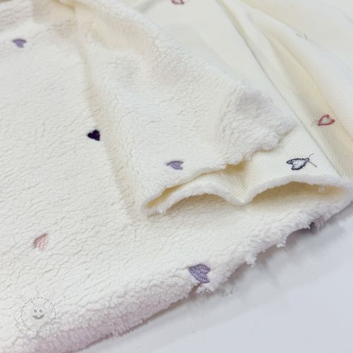 Mantelstoff TEDDY EMBROIDERY Hearts ecru