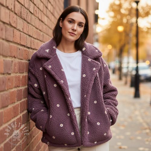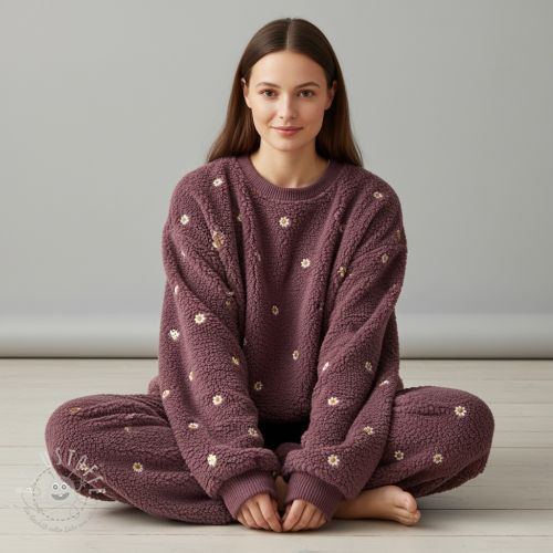Mantelstoff TEDDY EMBROIDERY Mini rosewood