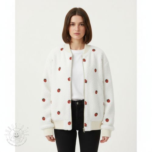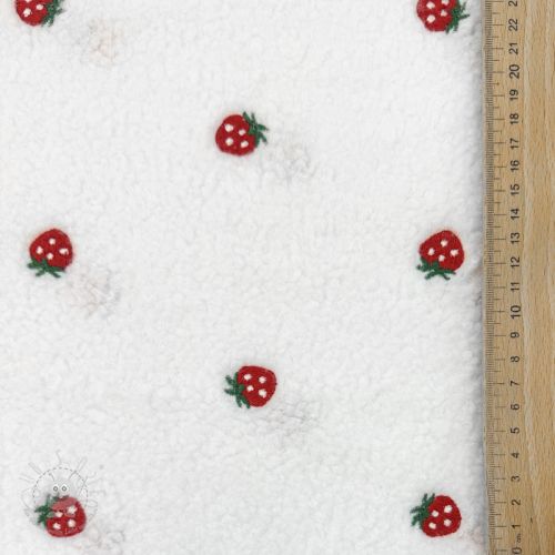 Mantelstoff TEDDY EMBROIDERY Strawberries white