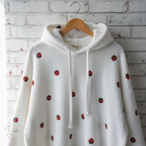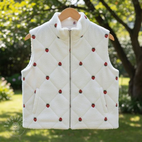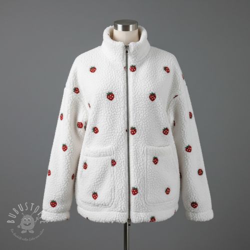 Mantelstoff TEDDY EMBROIDERY Strawberries white