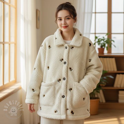 Mantelstoff TEDDY JACQUARD EMBROIDERY Sunflower