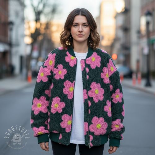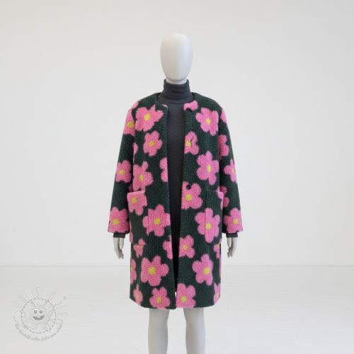 Mantelstoff TEDDY JACQUARD Flowers army green/pink