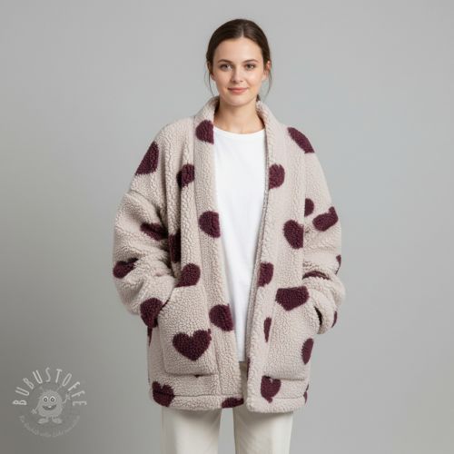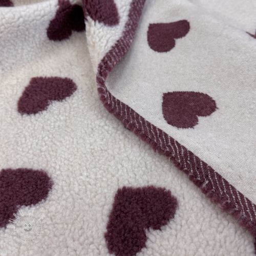 Mantelstoff TEDDY JACQUARD Hearts rouge