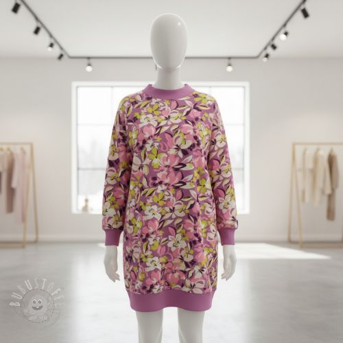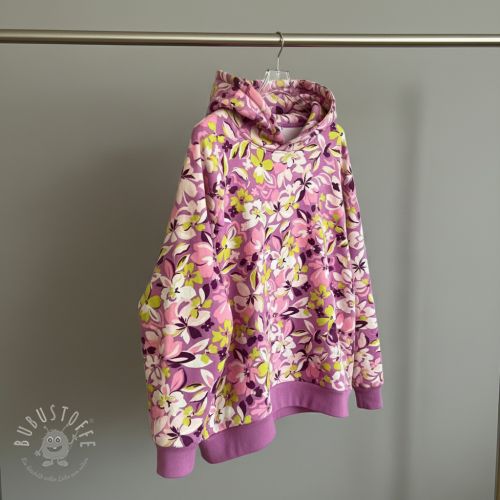 Sweatstoff Bright flowers design purple ochre