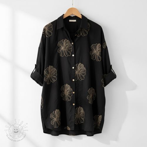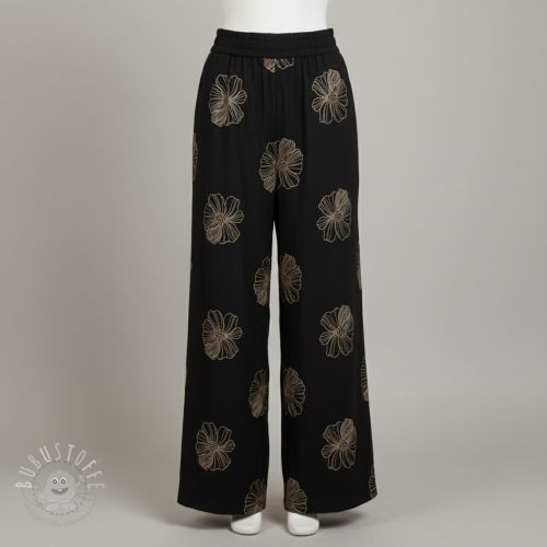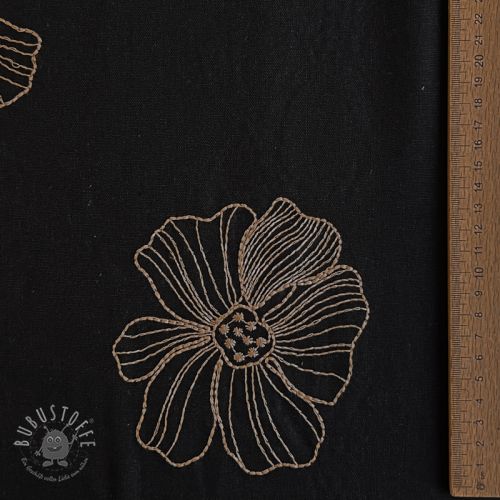 Viskosestoff leinen EMBROIDERY Flower Maya black